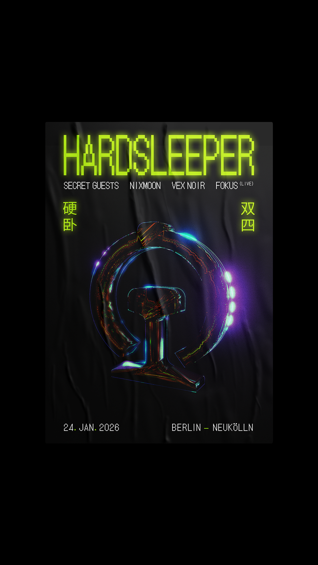 Visual communication for the next HARDSLEEPER event in Berlin Neukölln.