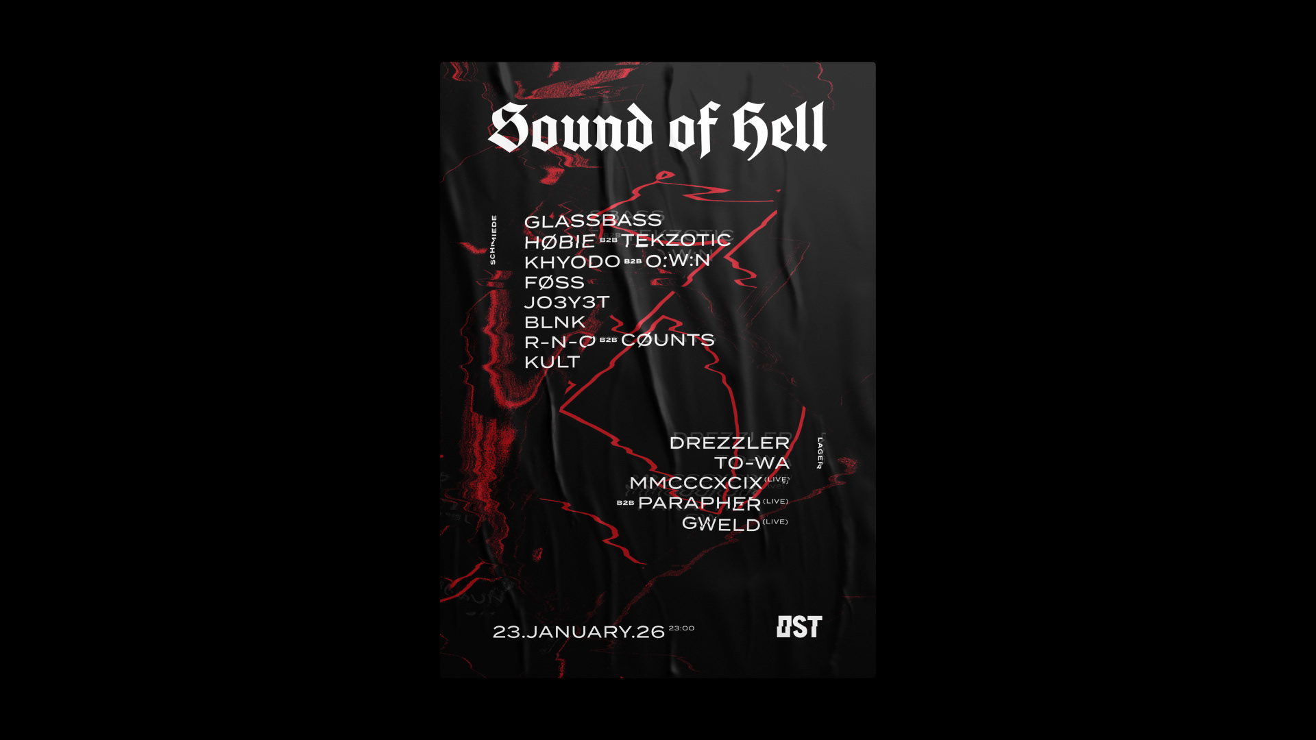 Visual communication for the first Sound of Hell event in 2026. Industrial Techno, Hardtechno, Industrial Hardcore & Hardcore.